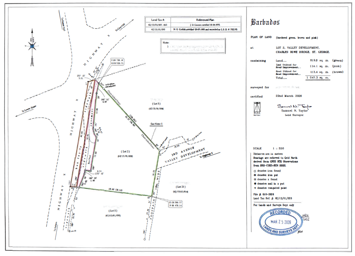 Lot 2 – Valley Development, Charles Rowe Bridge, St. George offers a well-positioned and generously sized residential lot in a highly convenient central location. Priced at BDS $199,000, this 11,273 sq. ft. parcel is ideal for building a comfortable family home or making a solid investment in an area that continues to attract steady demand.